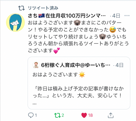 自分のツイートにリプライしてくれた方にはさらにリプをします。いわゆる『リプ返』です。僕が観察している限り、これを怠るとアカウントが衰退します。反応がどんどん取れなくなっていきます。