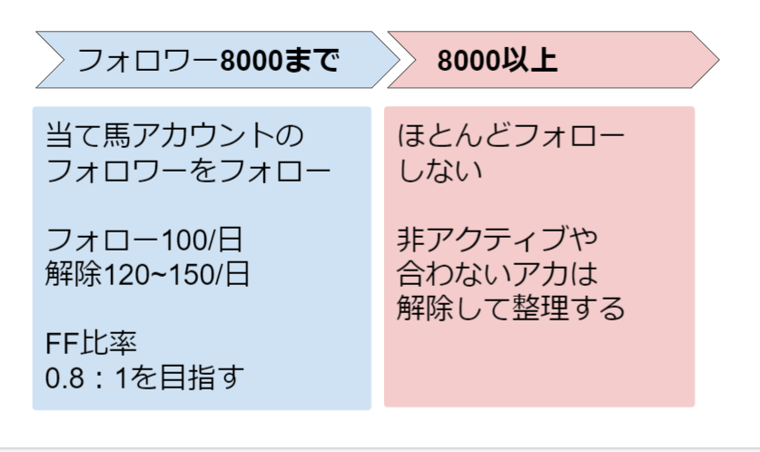 (1)【オプション】相互フォローアカウントを毎日100件ほどフォローする。フォロワーが2000人になるまでに(2)と(3)を決める。